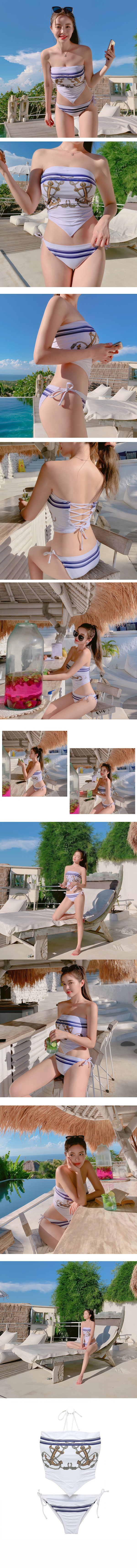 小胸友好 純欲海軍風時尚性感美背網美拍照平口韓系泳衣