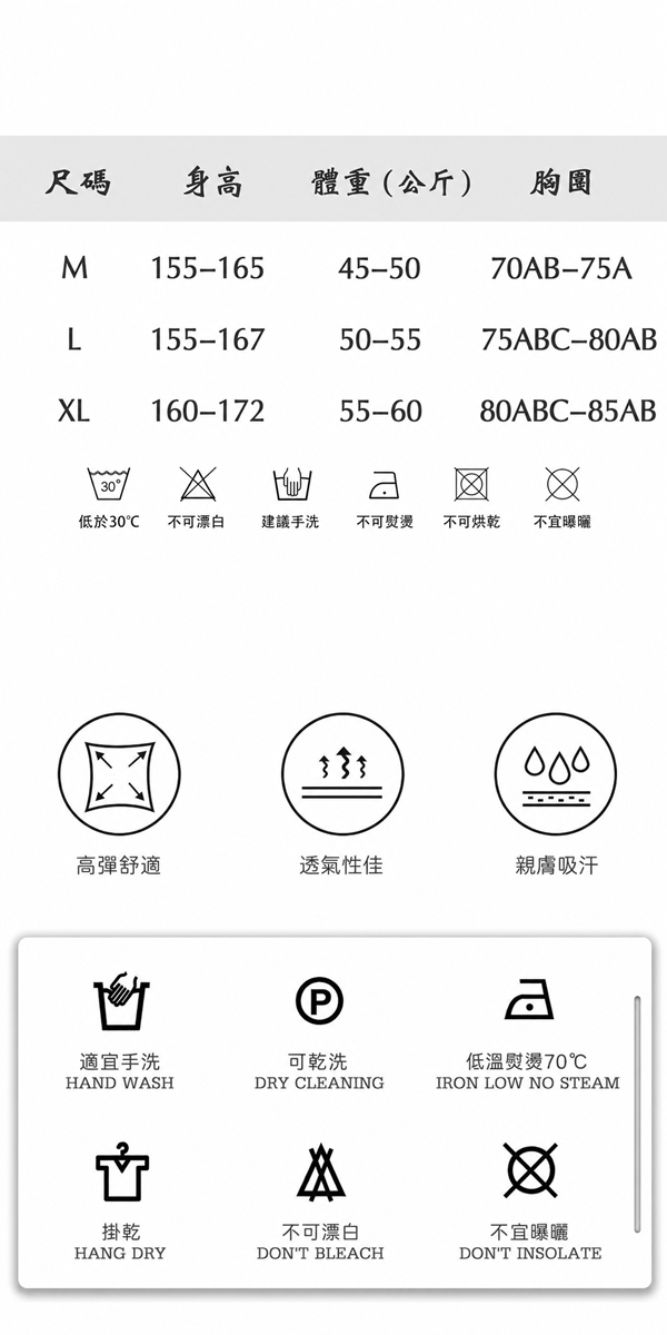 ■注意事項:基於保障消費者個人衛生,此貼身衣物恕不接受退換貨。