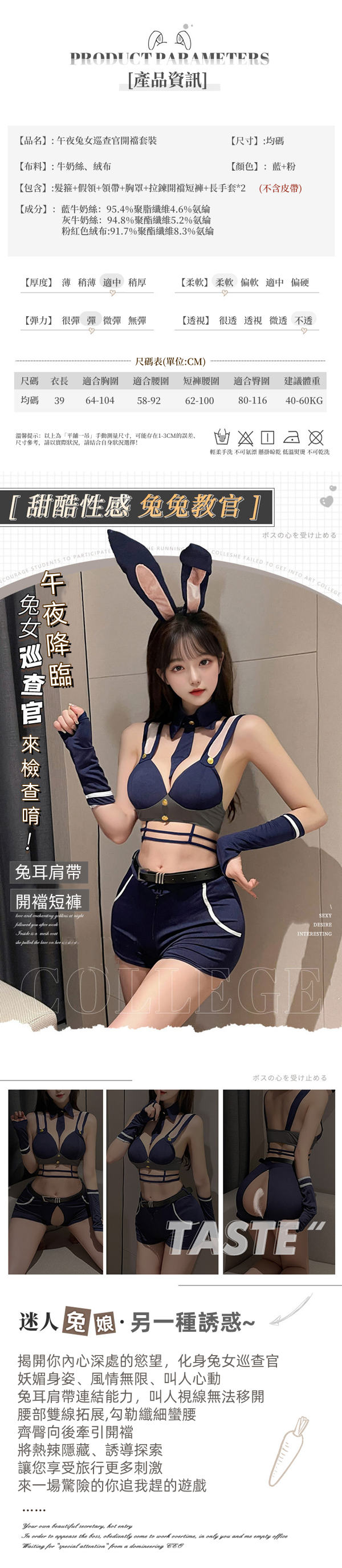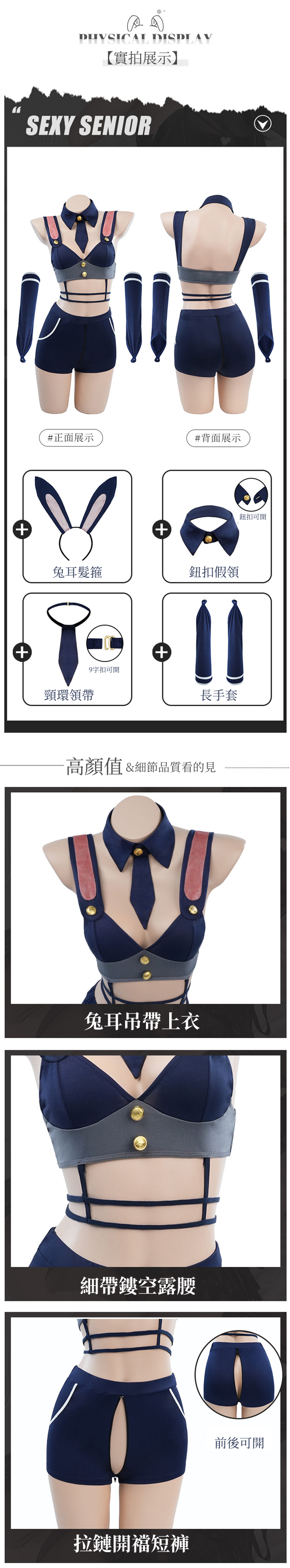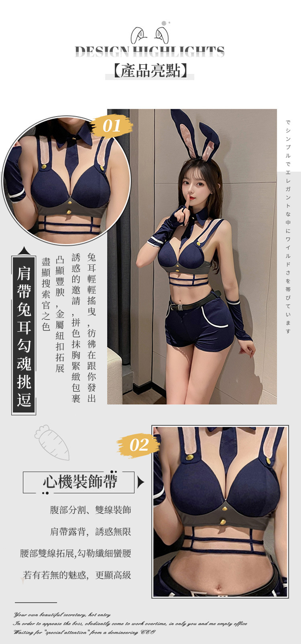 午夜性感兔子警官女警巡查官制服開襠6件組套裝