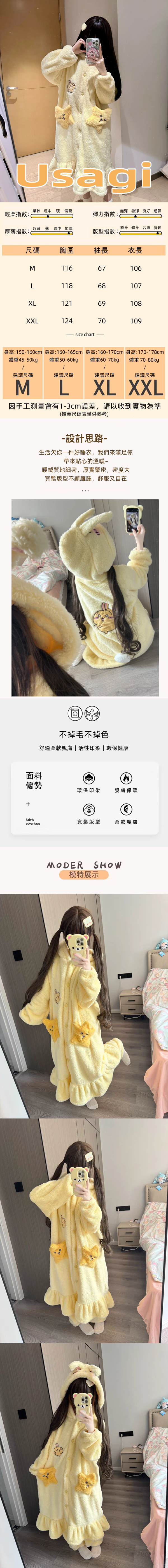 冬季毛絨吉伊卡哇烏薩奇兔子印花寬鬆長版暖和睡裙