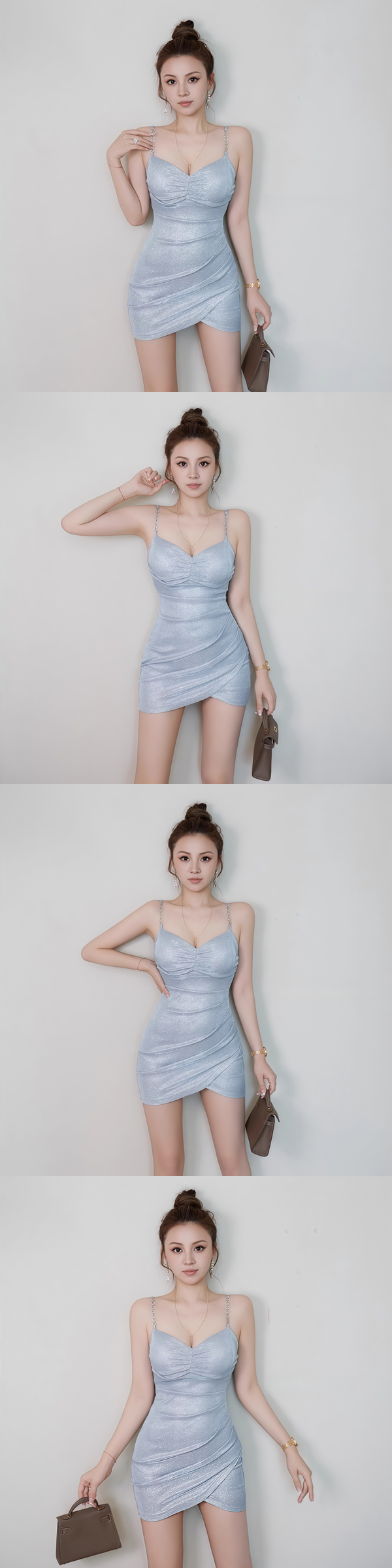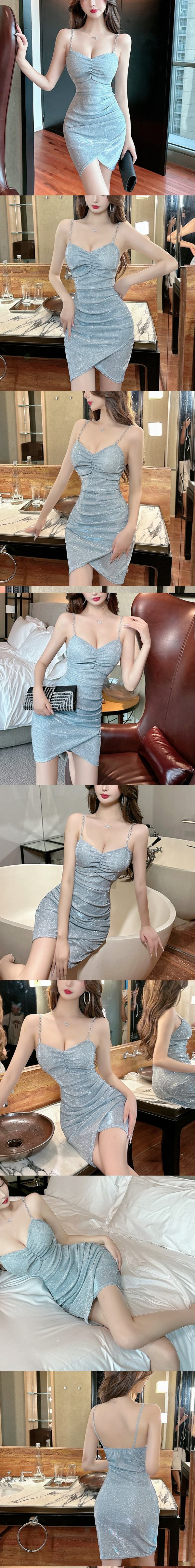 性感誘惑閃亮露背鏈條吊帶包臀連身裙