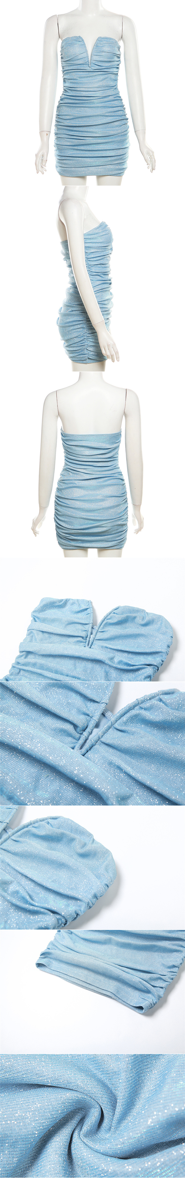 性感深V閃亮亮粉露背抓皺包臀連身裙