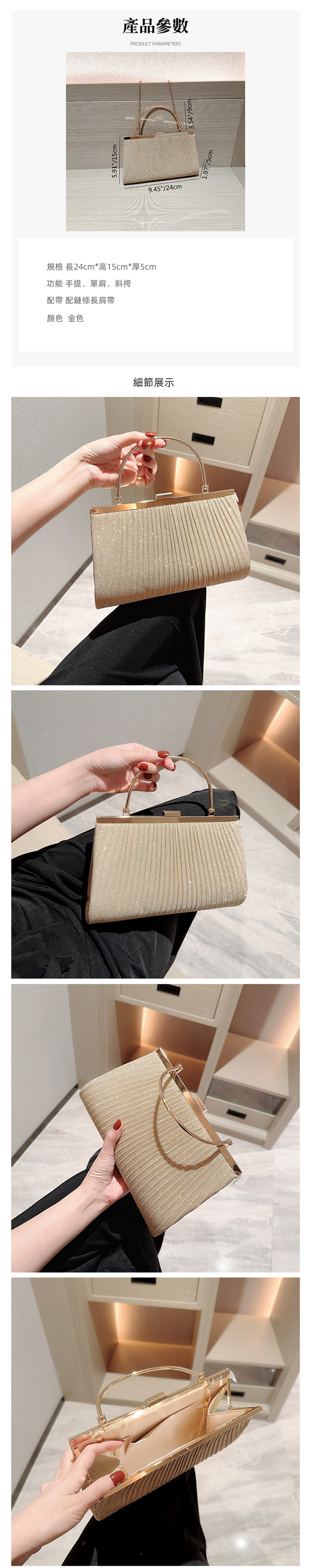 閃亮皺褶大容量手提包斜跨包晚宴包禮服包