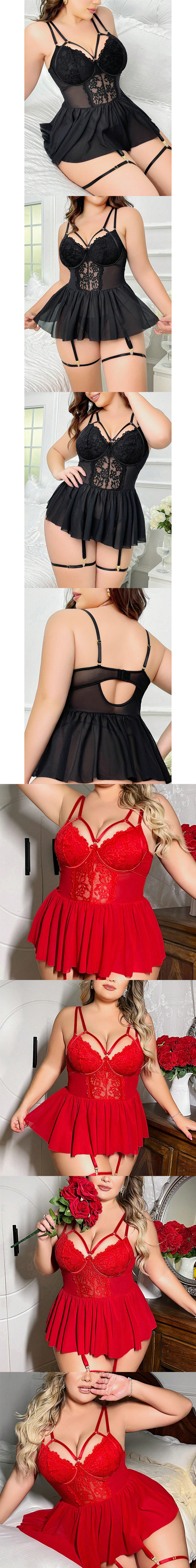中大尺碼 性感誘惑透視蕾絲連身情趣睡衣