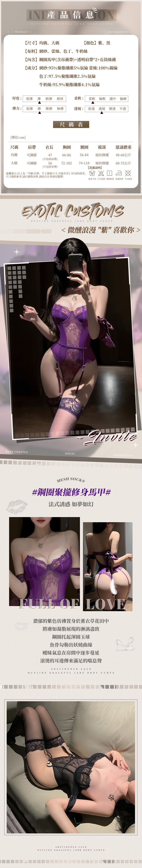 ※ 內容物:鋼圈馬甲(含吊襪帶)+透明肩帶*2+長筒絲襪