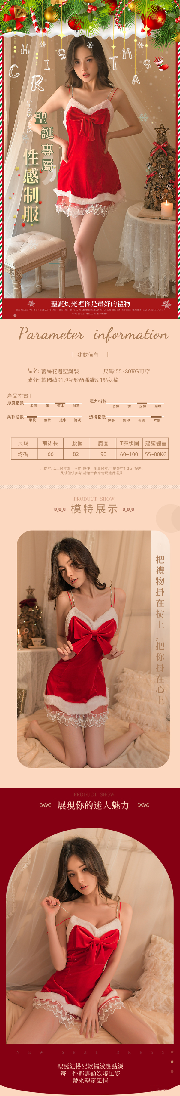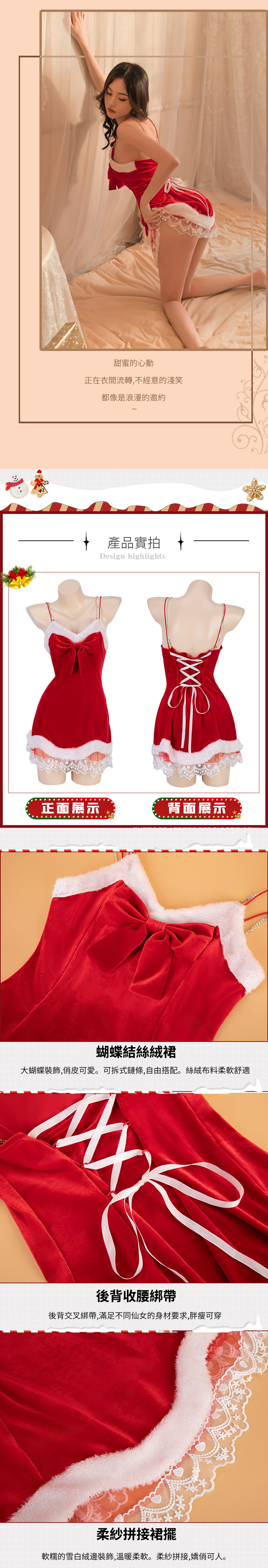 可愛蝴蝶結吊帶聖誕毛絨雙肩帶連身裙性感修身耶誕戰袍
