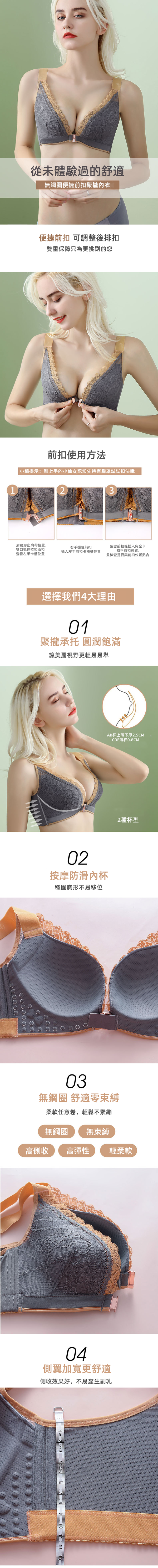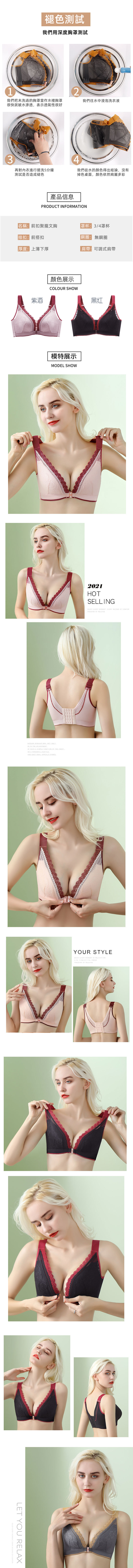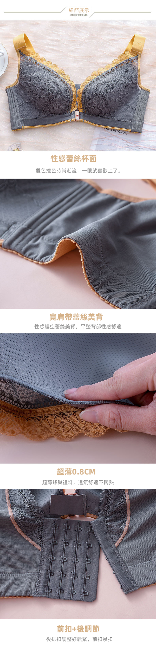 大胸前扣深V聚攏蕾絲美背無鋼圈收副內衣