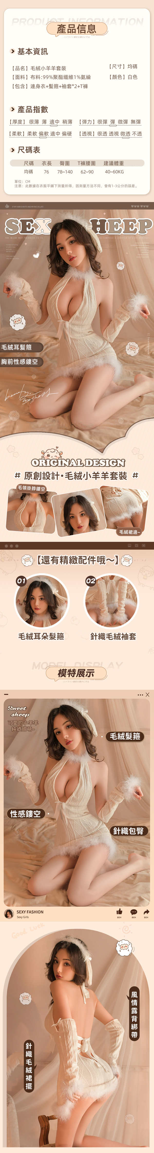 ■商品內容:針織繫帶連衣裙+袖套*2+丁字褲+髮箍