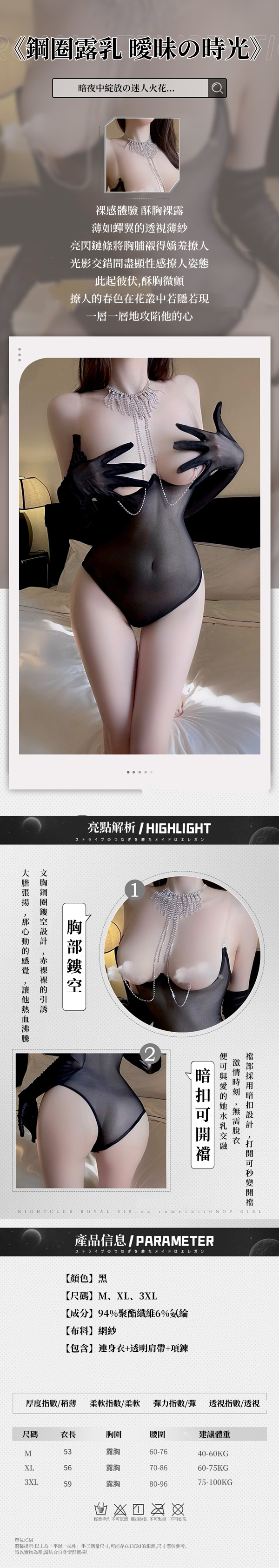 ■商品內容:連身衣+透明肩帶+可調節項鍊乳鍊