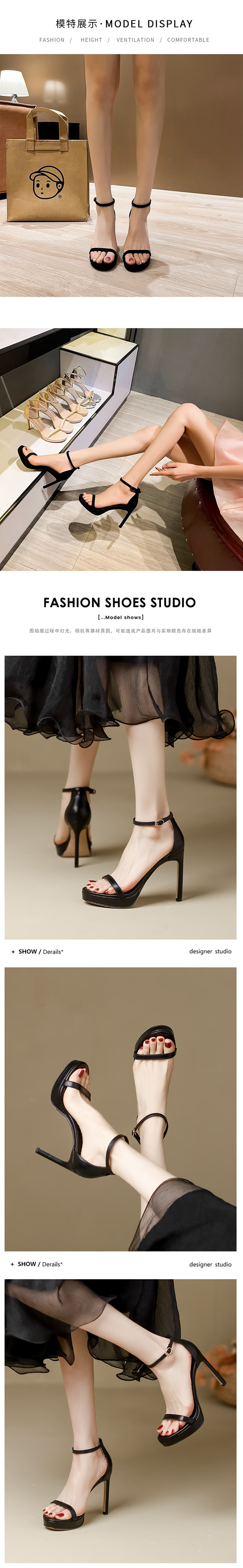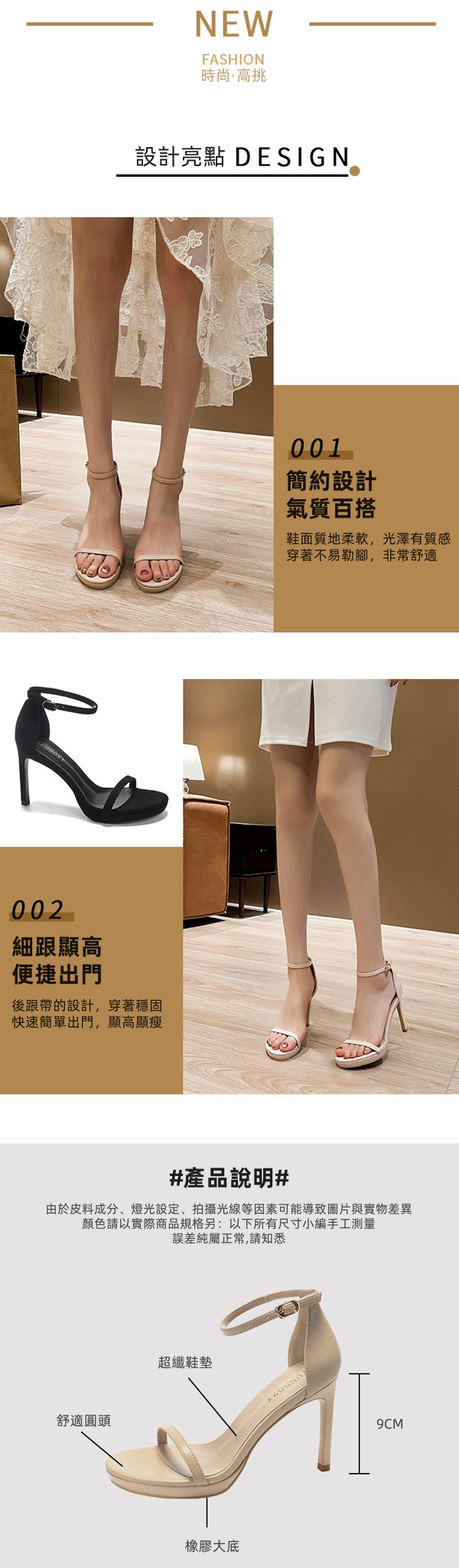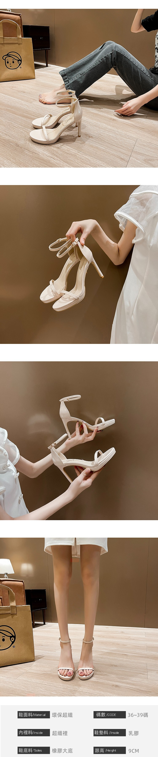 簡約時尚百搭一字带網紅同款高挑9CM高跟鞋