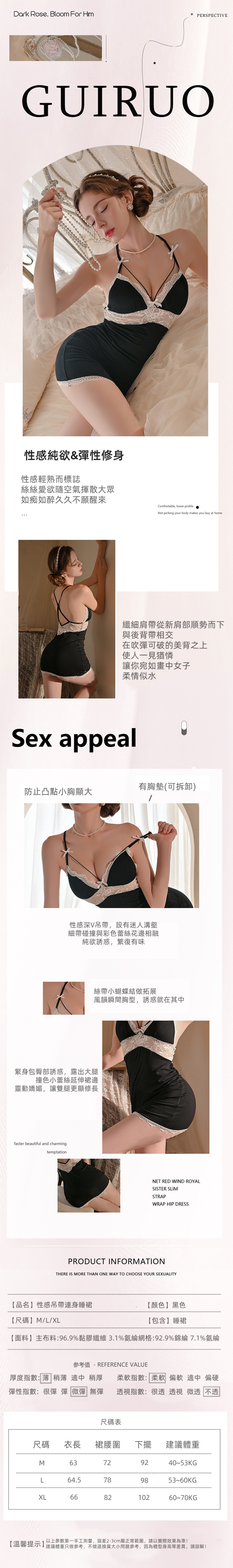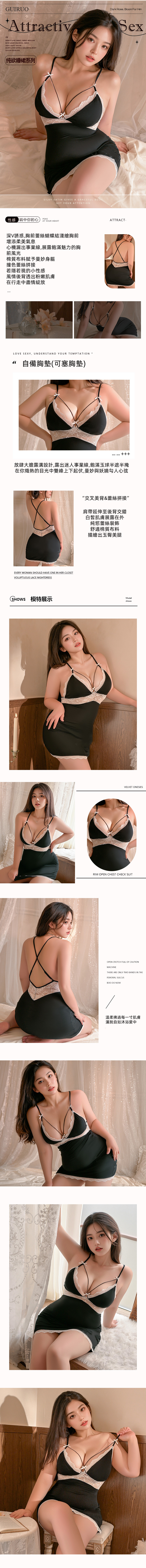 帶胸墊火辣深V性感誘惑連身睡裙