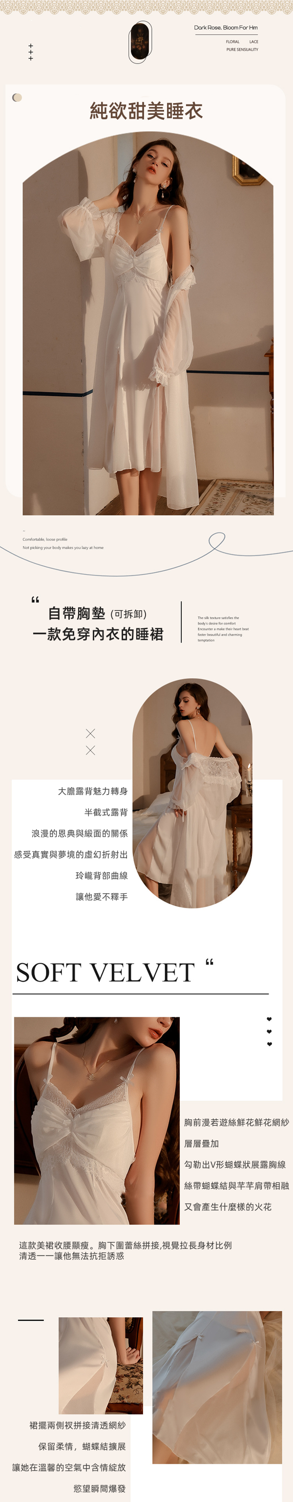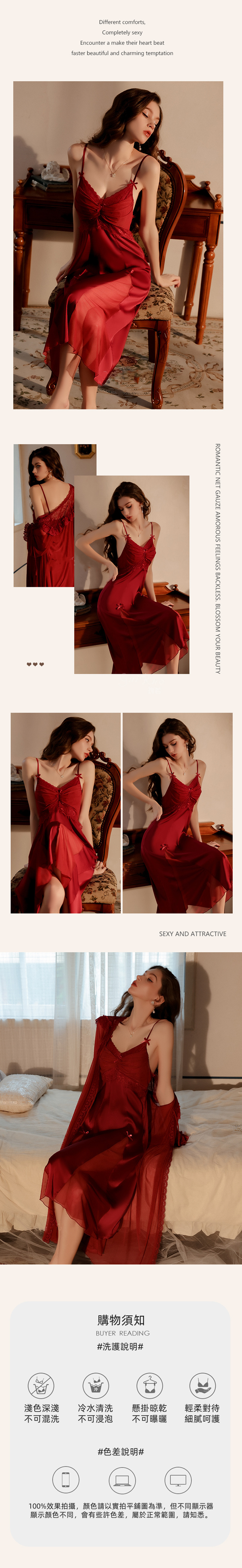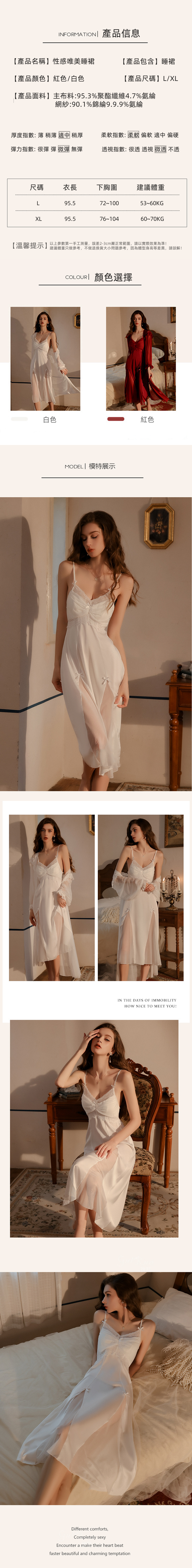 L~XL 中大尺碼時尚帶胸墊冰絲純欲甜美網紗吊帶長睡裙