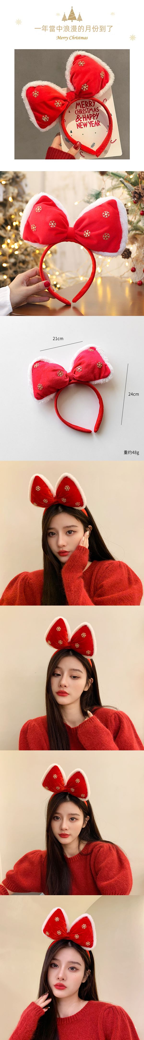 耶誕毛絨韓式聖誕頭飾蝴蝶結髮箍俏麗髮箍