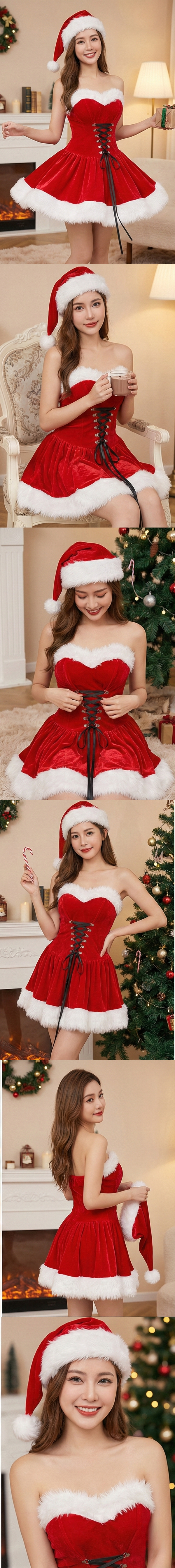 中大尺碼 聖誕節性感甜美毛絨綁帶連身裙