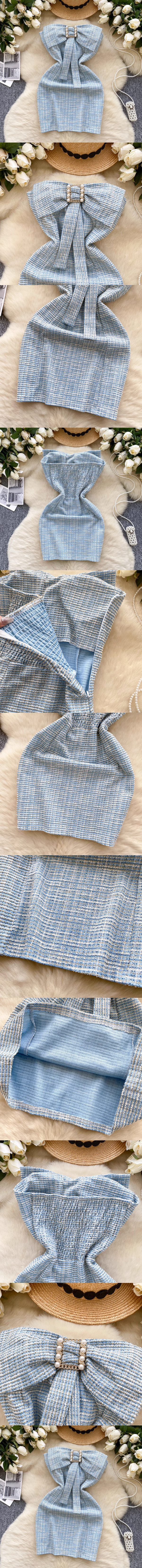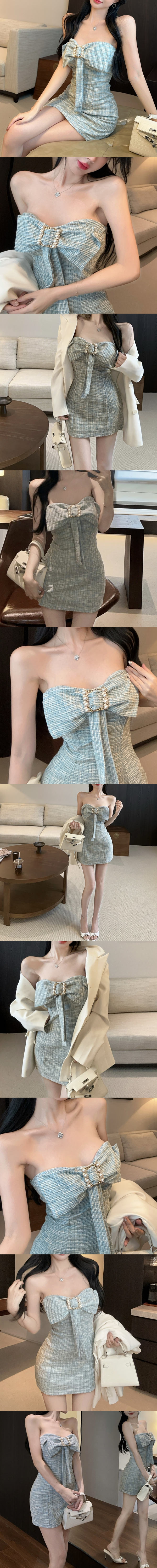 優雅氣質設計感蝴蝶結連身小香風包臀裙