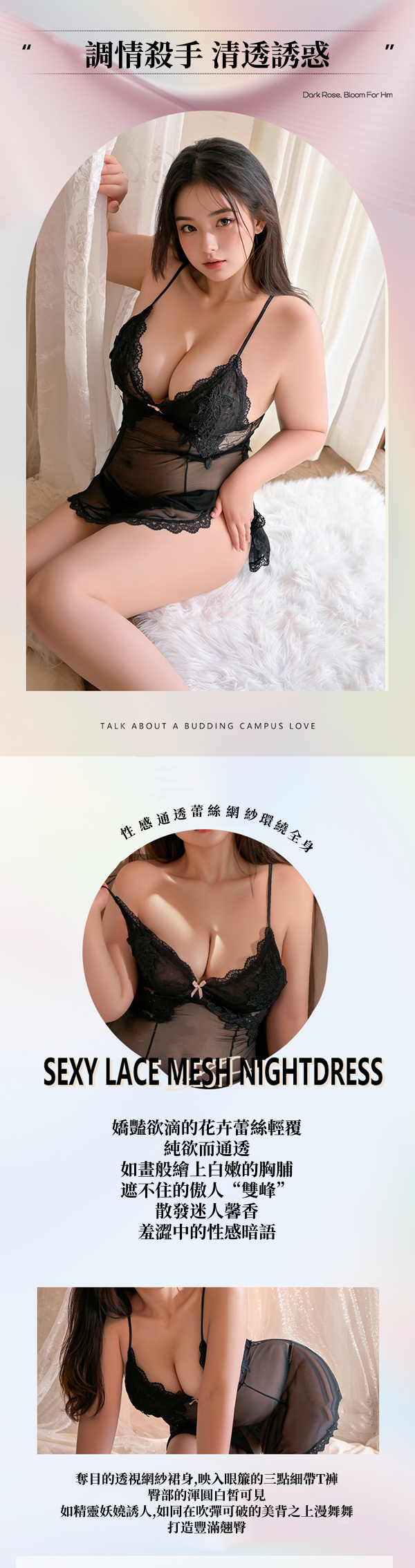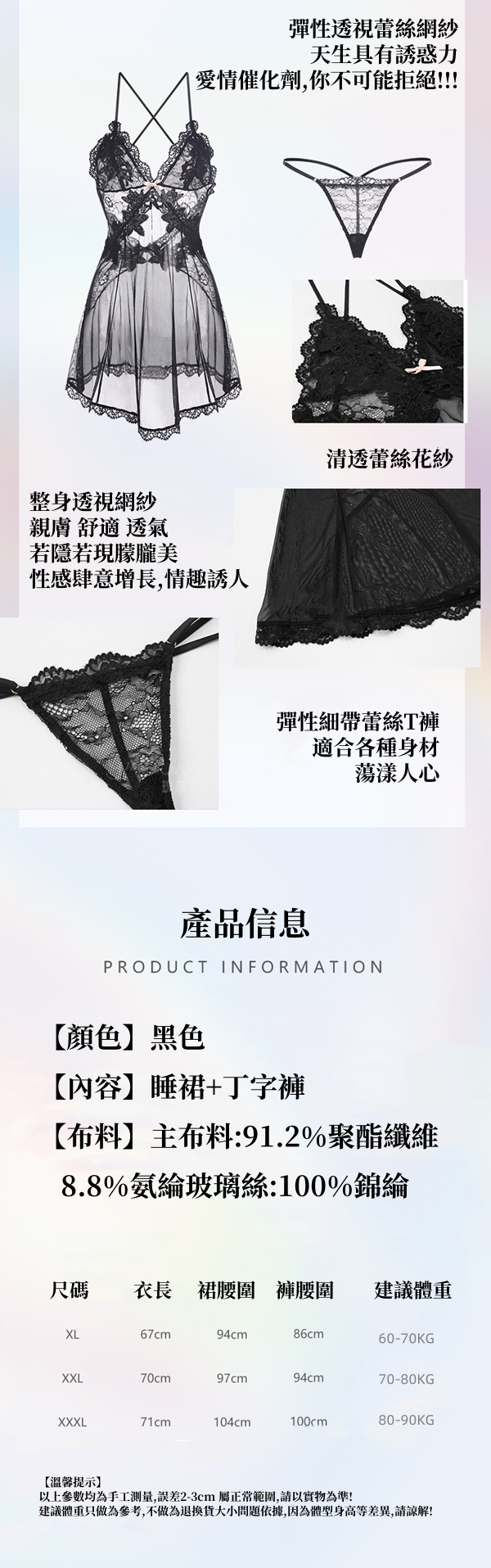 中大尺碼 性感誘惑激情火辣透視露背低胸吊帶睡裙