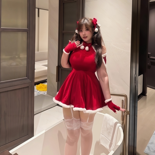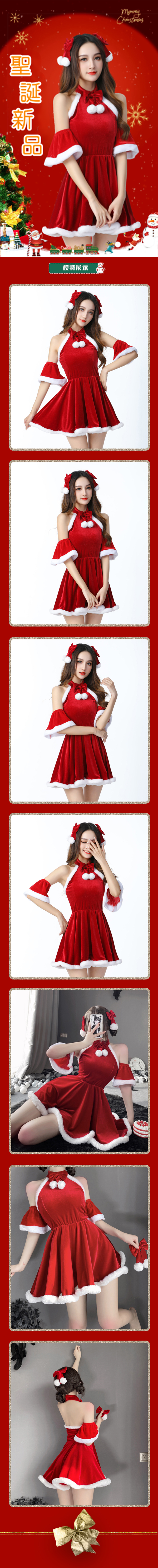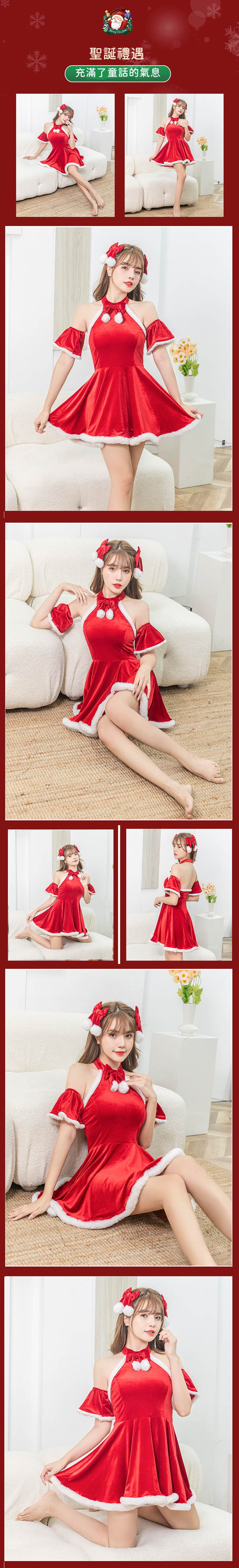 絲絨露肩聖誕連身套裝