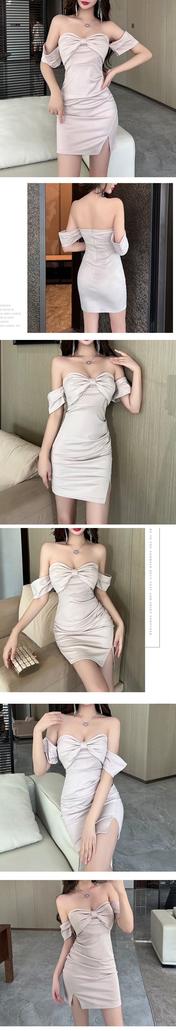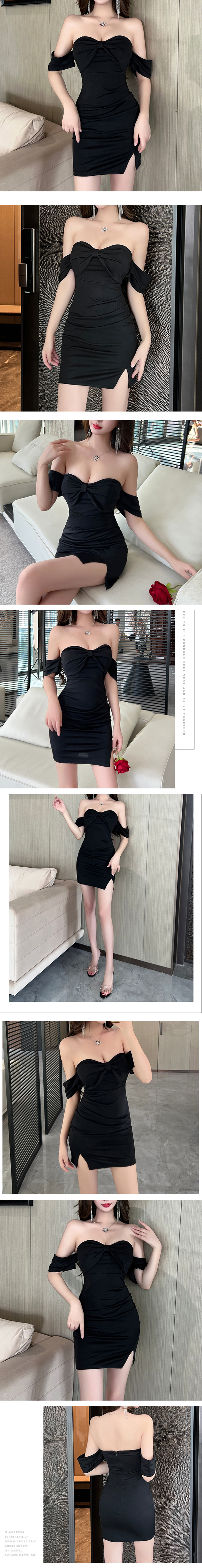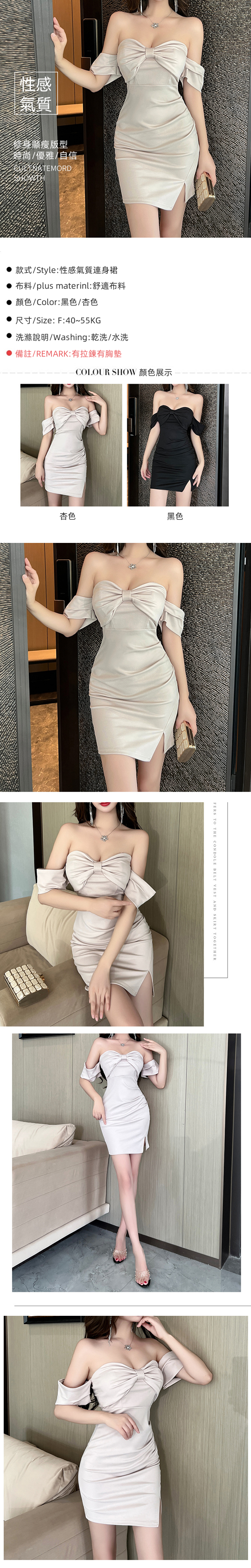 性感時尚一字肩深V帶胸墊顯瘦連身包臀裙