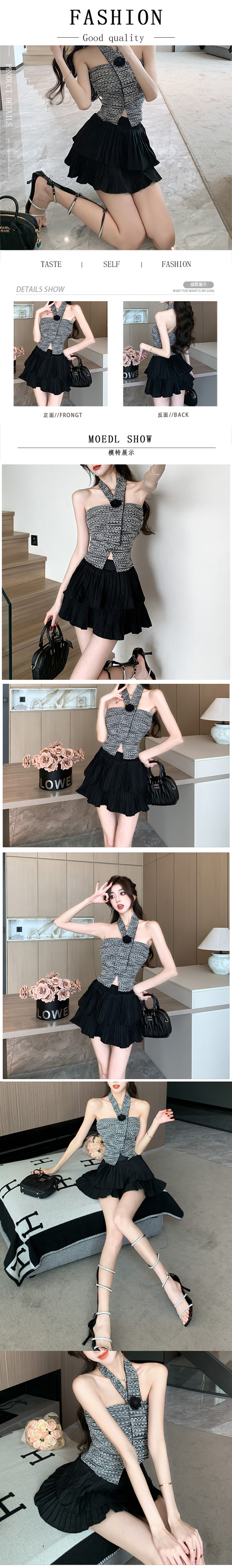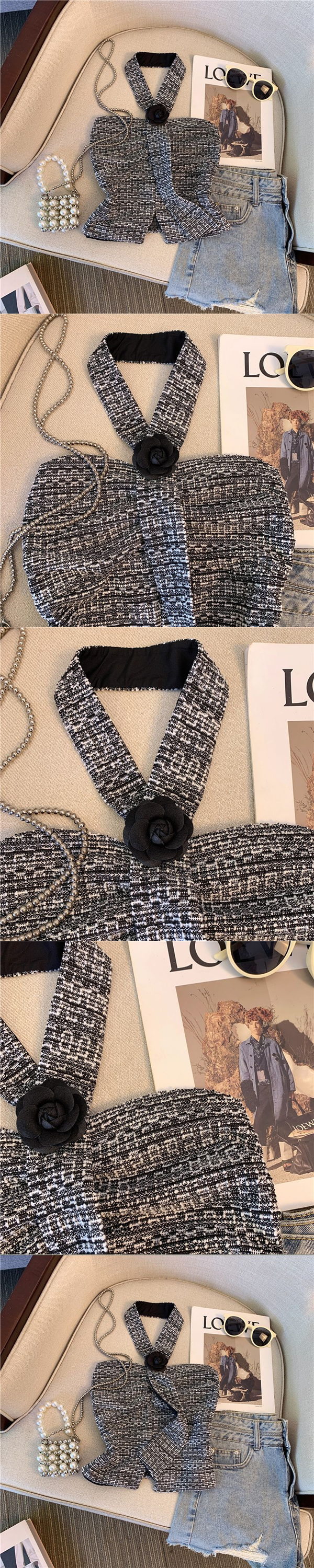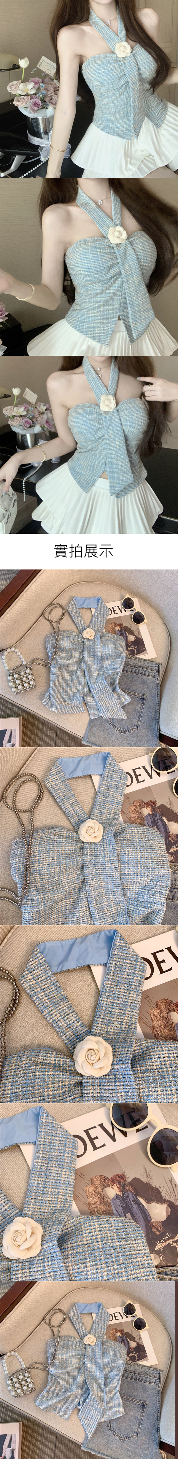 純欲小香風山茶花掛脖設計百搭小可愛背心