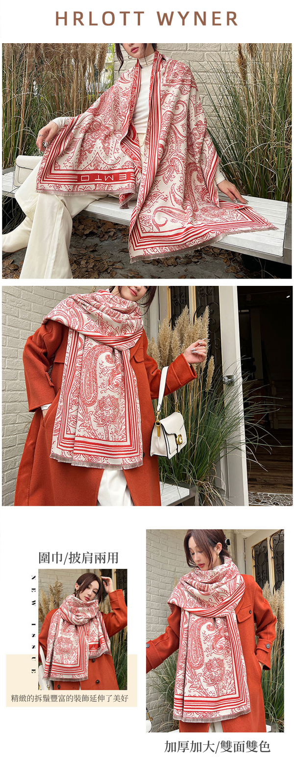 隨意百搭羊絨兩用加厚保暖親膚披肩圍巾