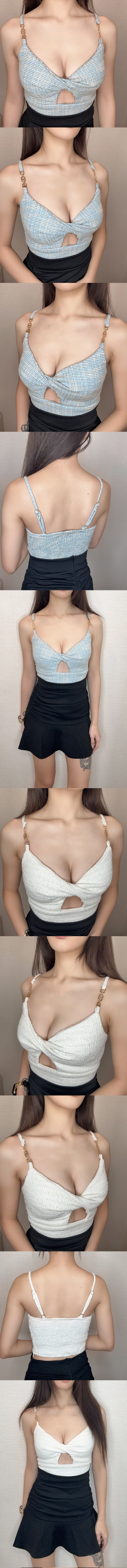 性感深V小香風扭結胸金環肩帶馬甲禮服上衣