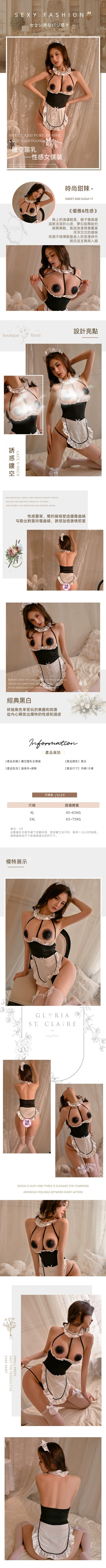 中大尺碼 性感鏤空露乳甜美女僕兩件式套裝