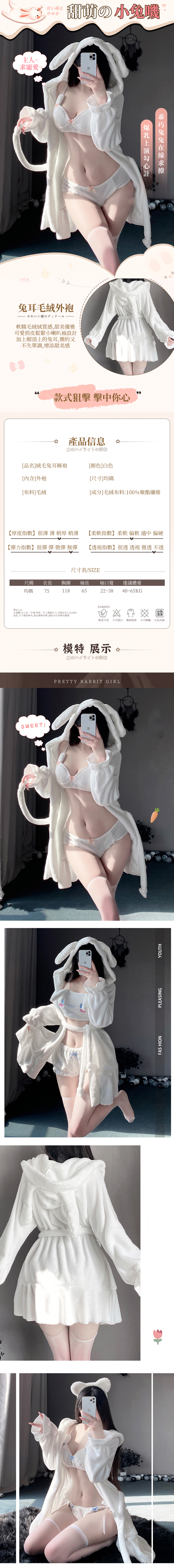 珊瑚絨秋季冬季兔耳朵毛絨舒適睡袍