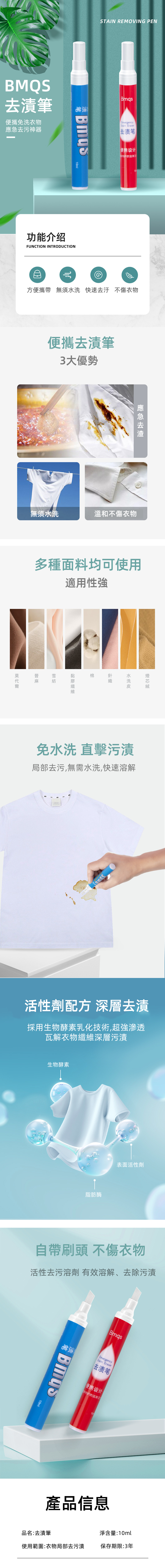 輕巧便攜 筆狀設計,隨身攜帶,隨時去污