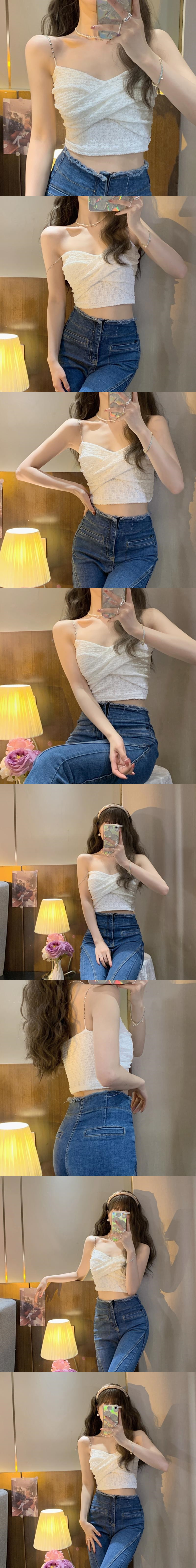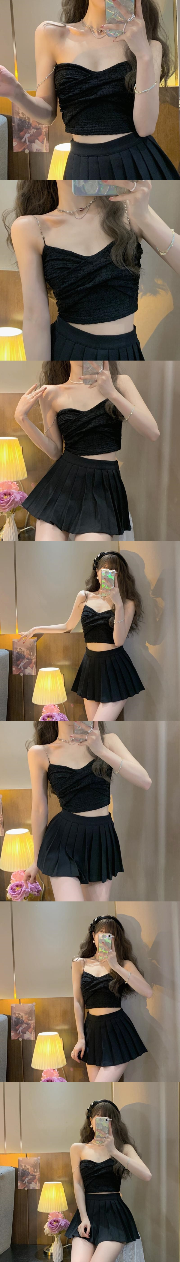 性感短款愛心鏈條褶皺外穿胸墊背心上衣