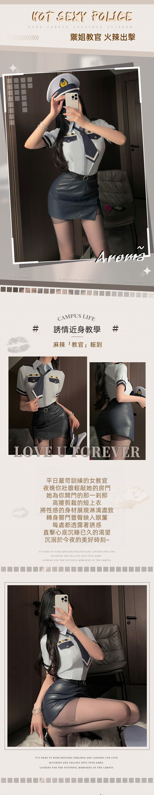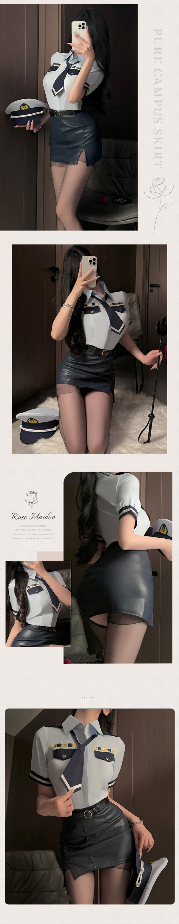 性感御姐漆皮包臀裙職業女警兩件式套裝