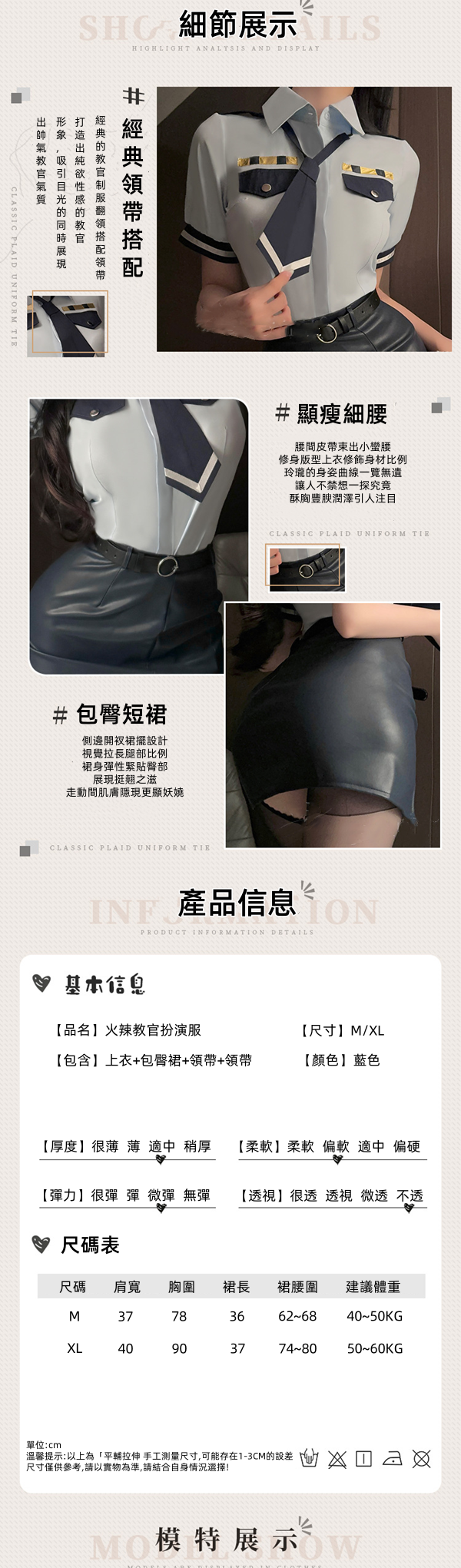 ■商品內容:上衣+包臀裙+領帶+領帶 (帽子可另外加購)