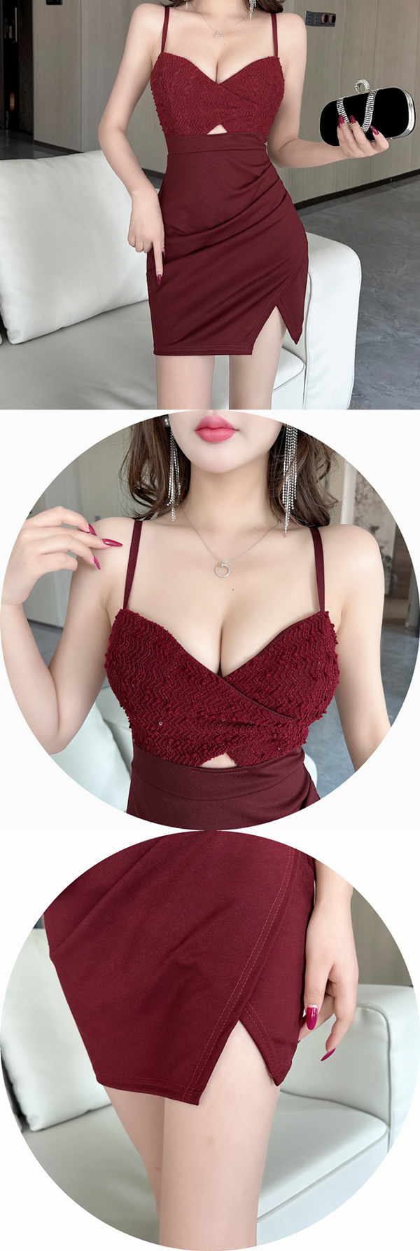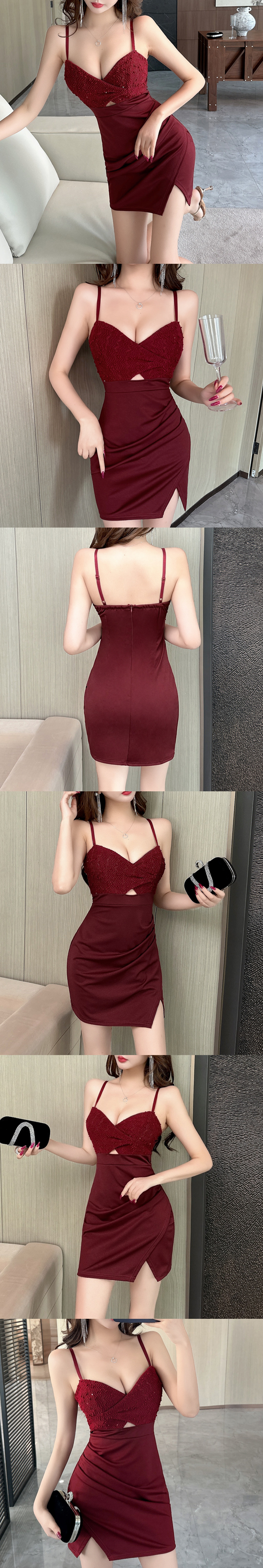 性感小心機鏤空深V低胸緊身包臀連身裙