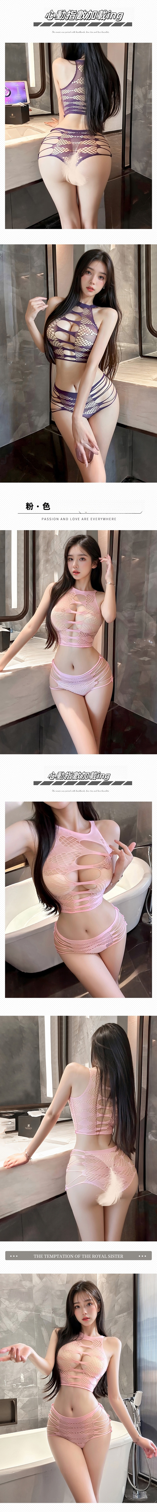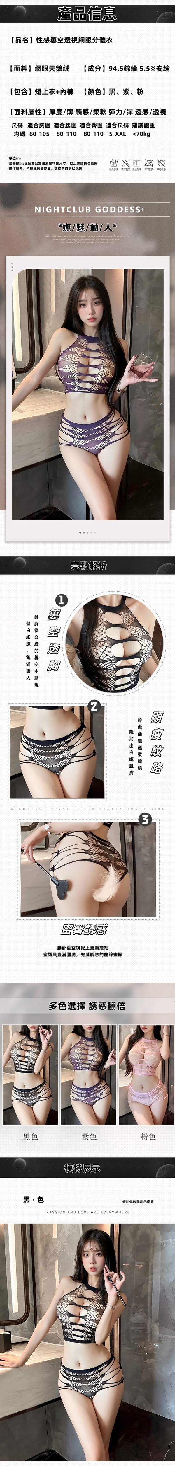 ■商品內容: 性感鏤空透視網眼分體兩件式套裝