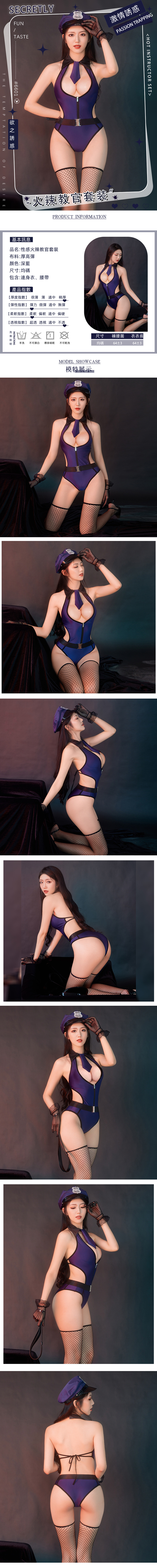 性感制服誘惑 女警角色扮演服 鏤空露背連身衣