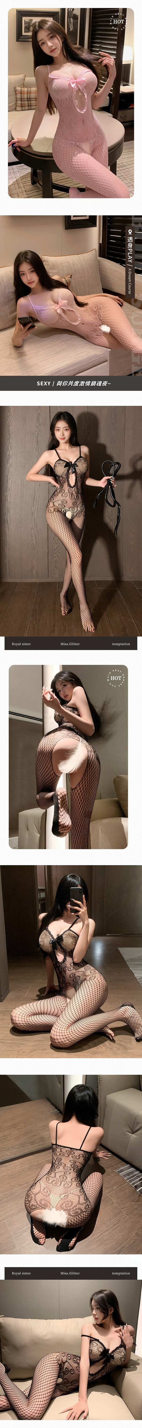 鏤空美胸蝴蝶緹花不修邊斜裙擺連身網衣長裙