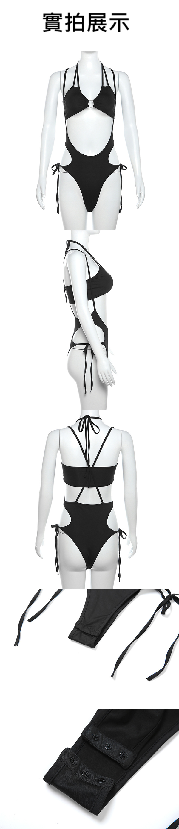 性感掛脖露背鏤空吊帶暗扣開襠兩件式連身衣