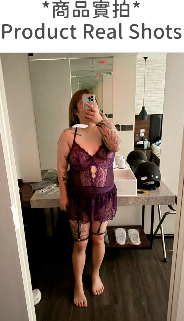 蕾絲花邊半透視鋼托聚攏開襠連身衣