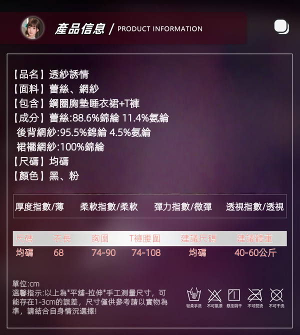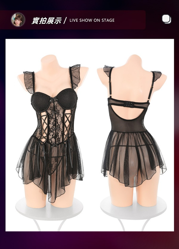 鋼圈胸墊睡衣裙透視露臀誘惑