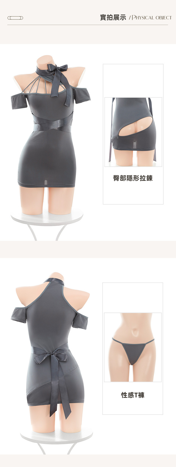 不規則斜肩鏤空包臀辣妹裙調情隱密拉鍊露臀設計連身裙