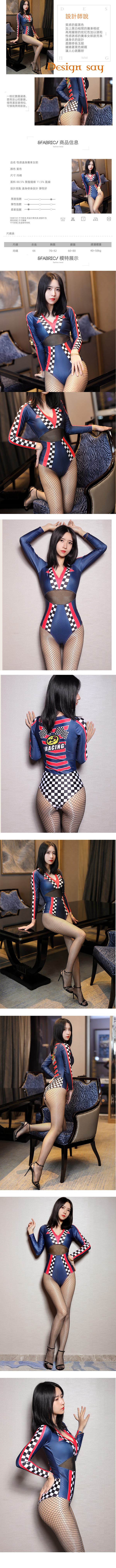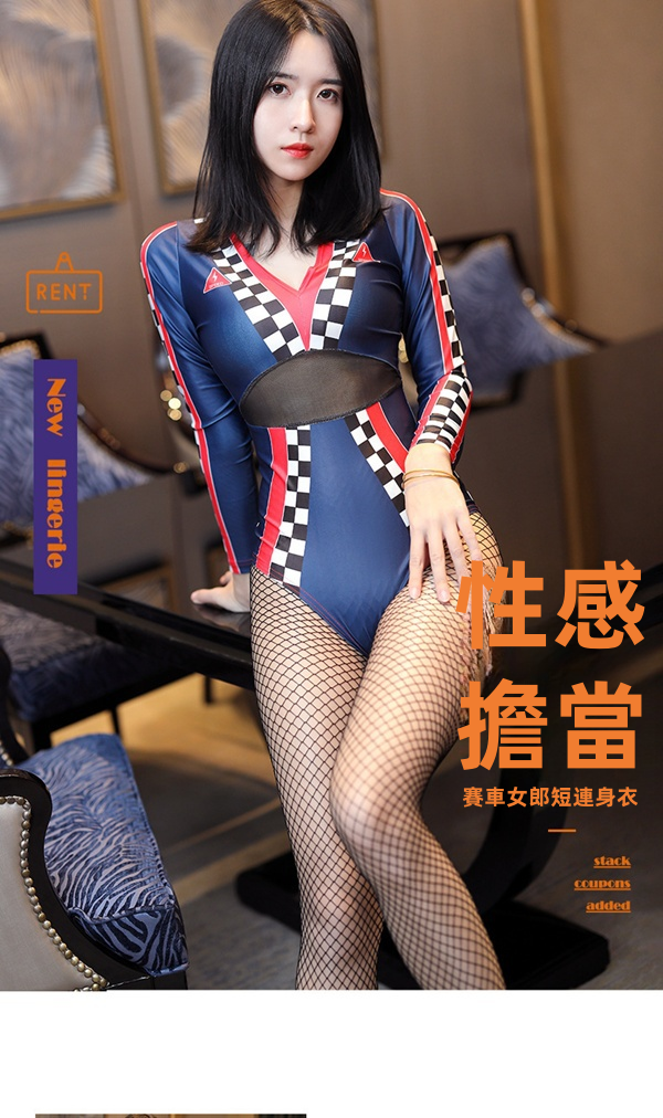 賽車車模性感誘惑網紗拼接修身彈力連身衣