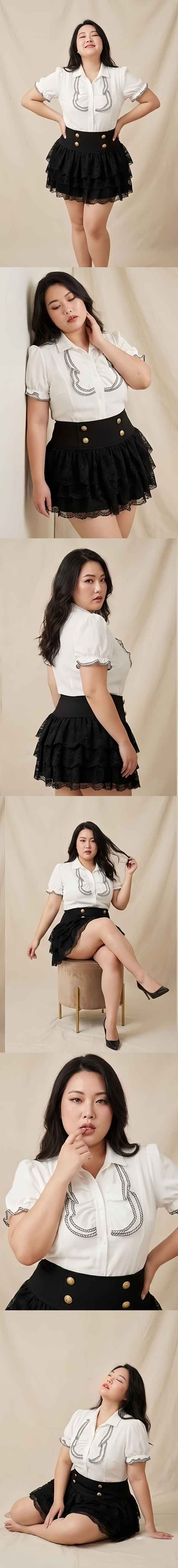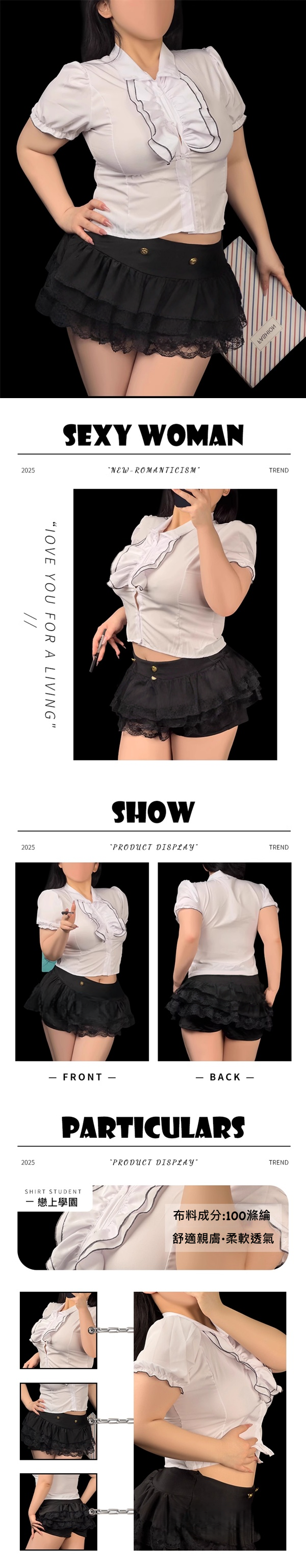 中大尺碼荷葉邊泡泡袖小清新學生套裝
