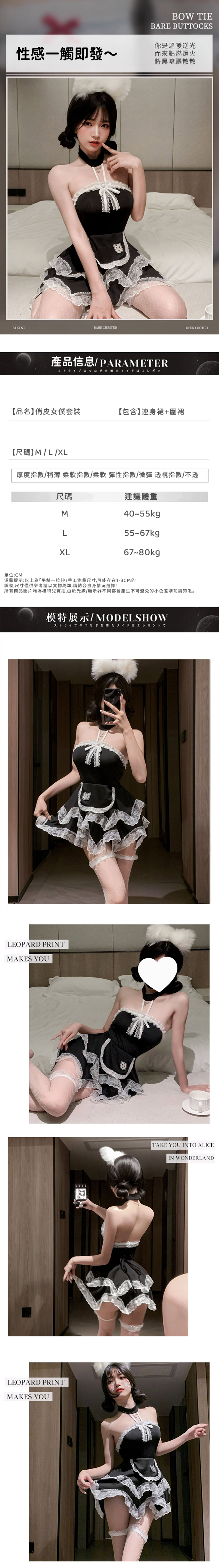 中大尺碼掛脖平口俏皮女僕套裝