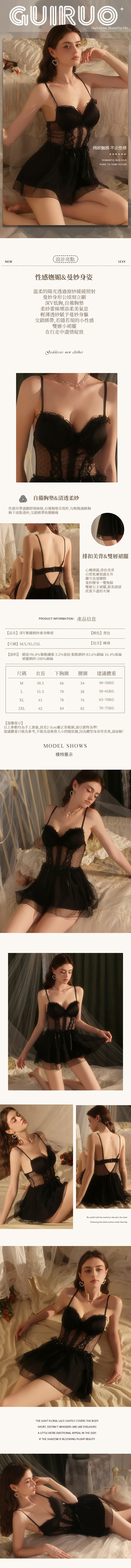 中大尺碼 性感深V聚攏帶胸墊火辣透視網紗蝴蝶結吊帶連身睡裙