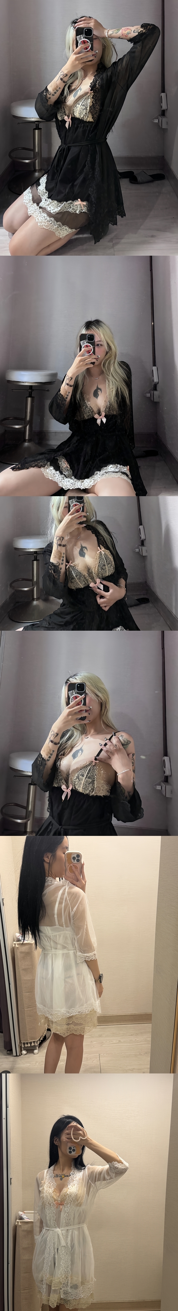 性感透視網紗花邊刺繡薄款睡袍