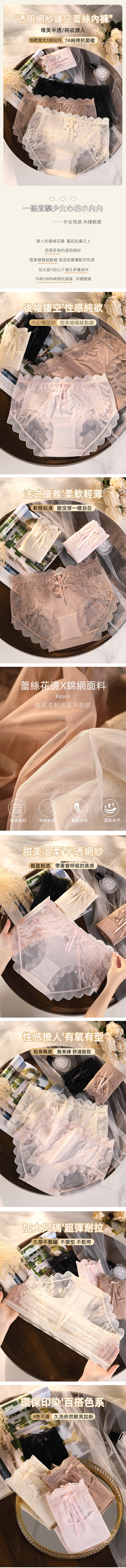 中大尺碼 鏤空網紗舒適高腰純棉襠花邊蕾絲三角褲