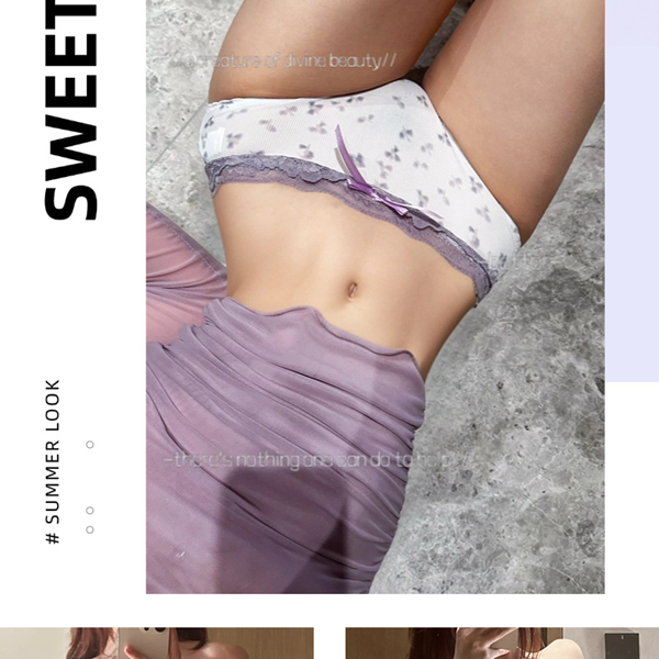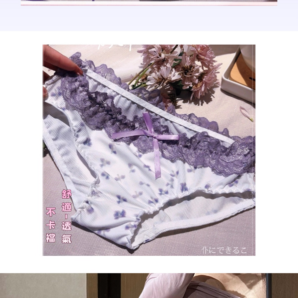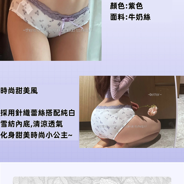 紫語精靈性感紫色內褲蕾絲牛奶彈力冰絲三角褲