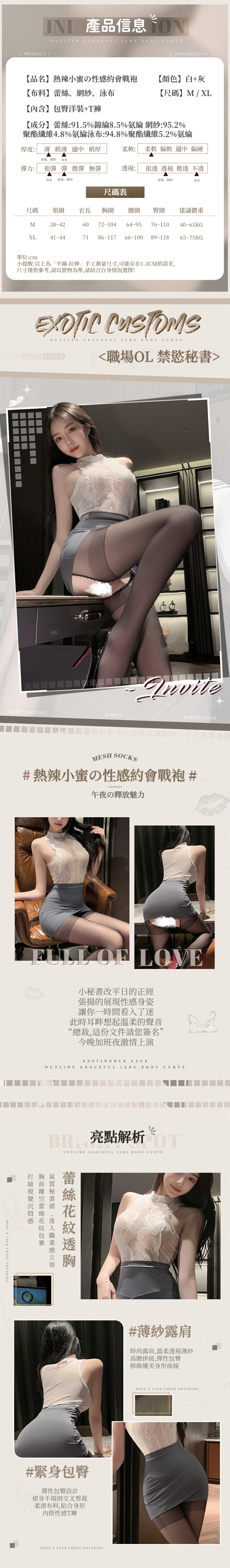 熱辣性感禁慾秘書 蕾絲拼接連身顯瘦包臀連身裙