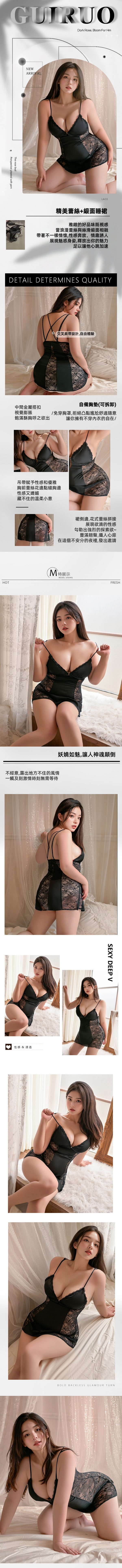 性感純欲交叉美背蕾絲胸墊睡衣