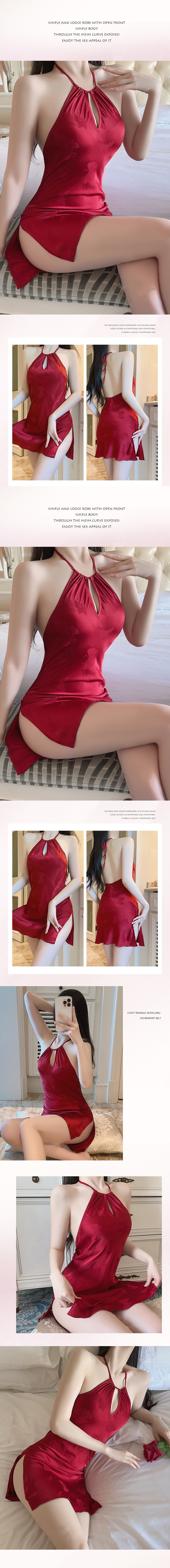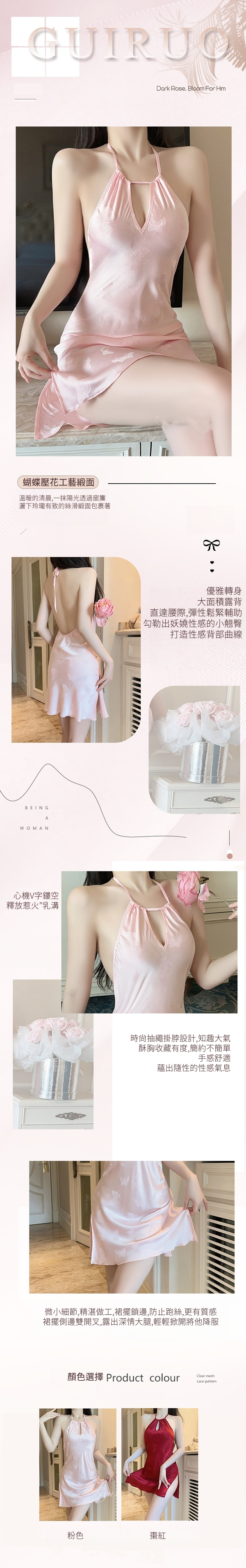 純欲掛脖蝴蝶印花冰絲緞面睡衣