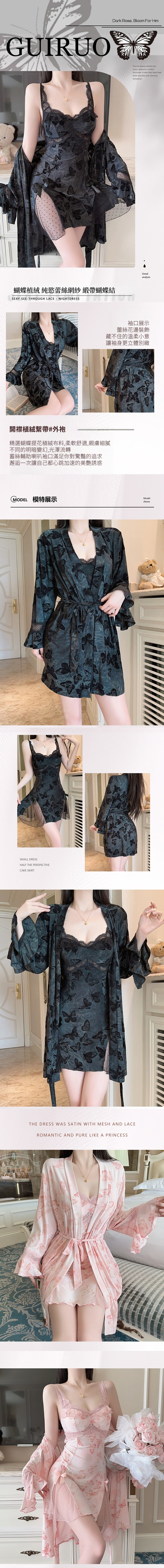 純欲輕奢蝴蝶絲絨蕾絲拼接蝴蝶印花睡袍